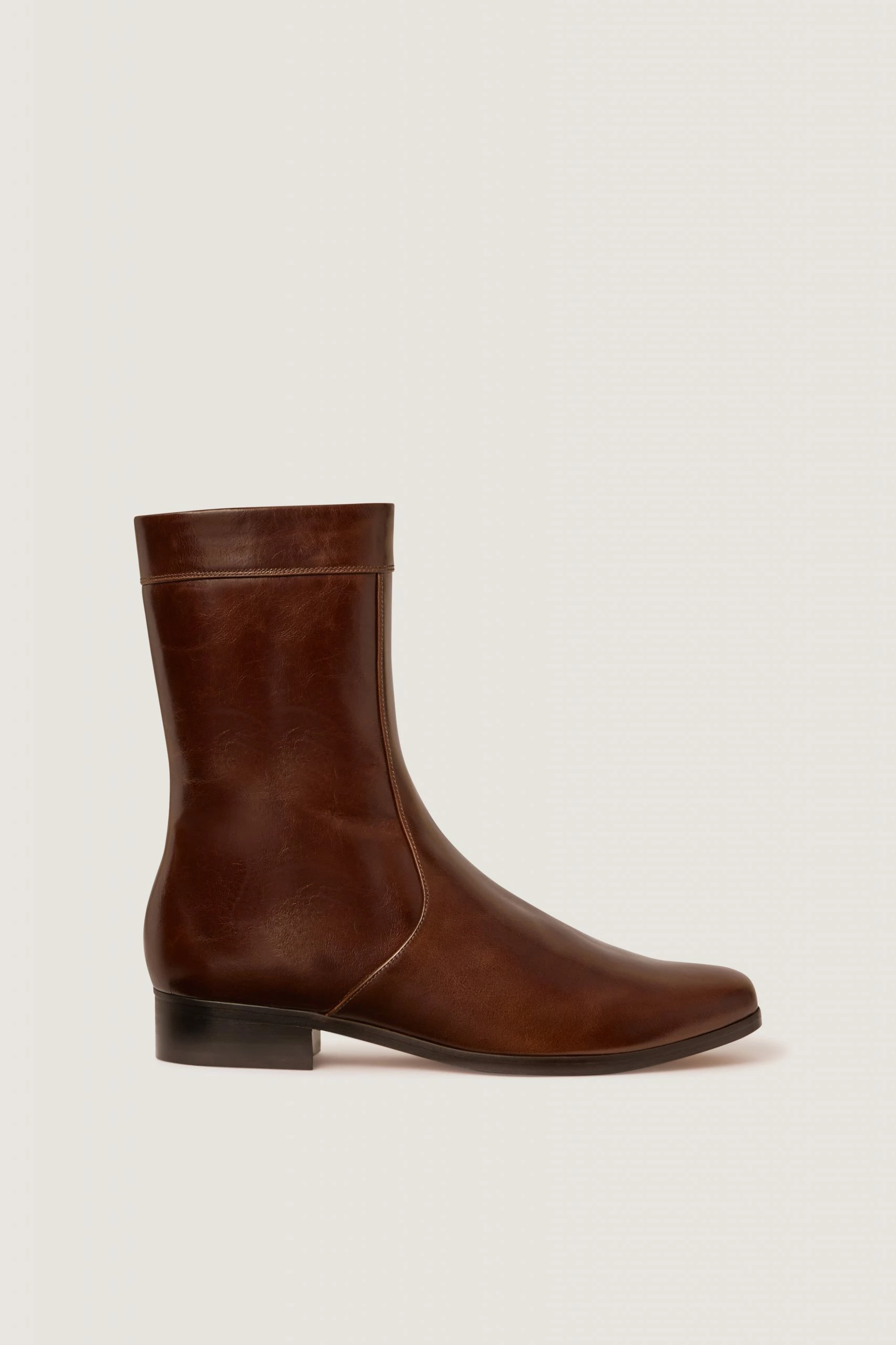 Ecaille est une bottine emblématique de nos collections. Elle possède une courbe inspirée des années 70 ainsi qu’un petit talon. Sa forme intemporelle la rend facile à associer aussi bien à un pantalon un peu court qu’à une tenue plus féminine.