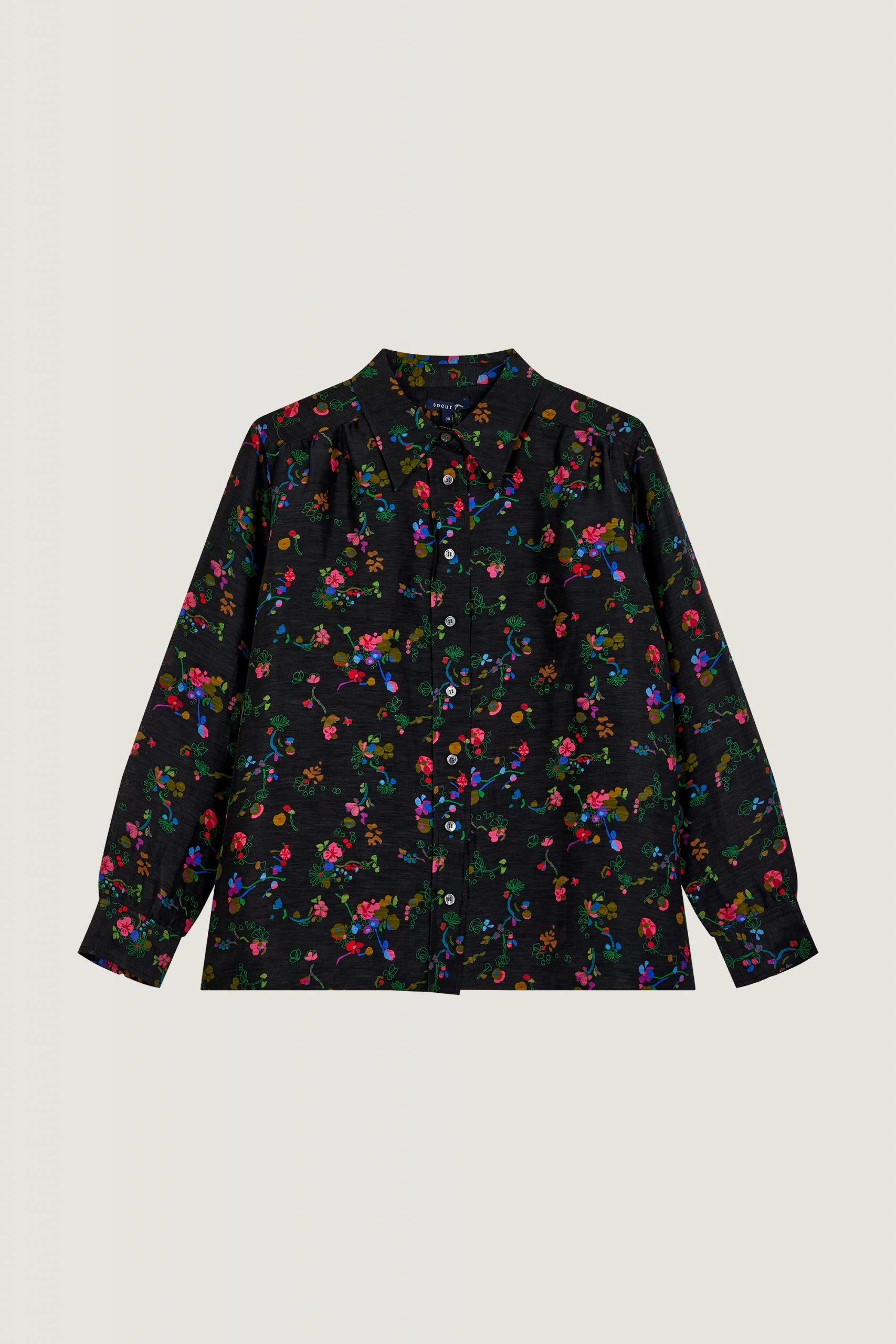 Chemise en soie et lin imprimée multicolore