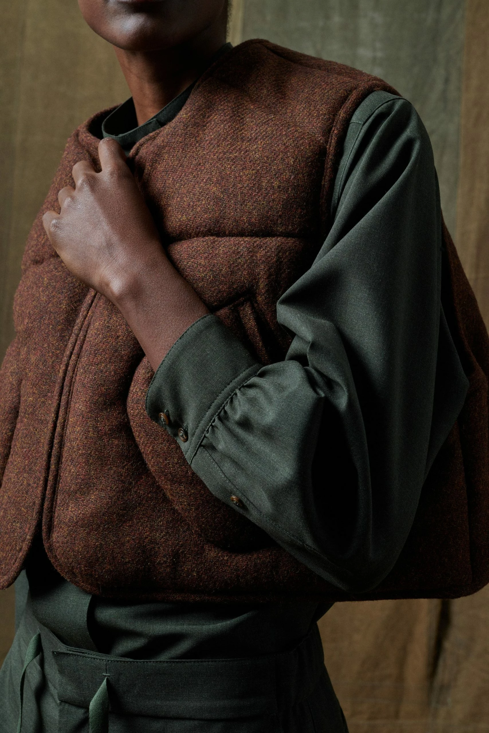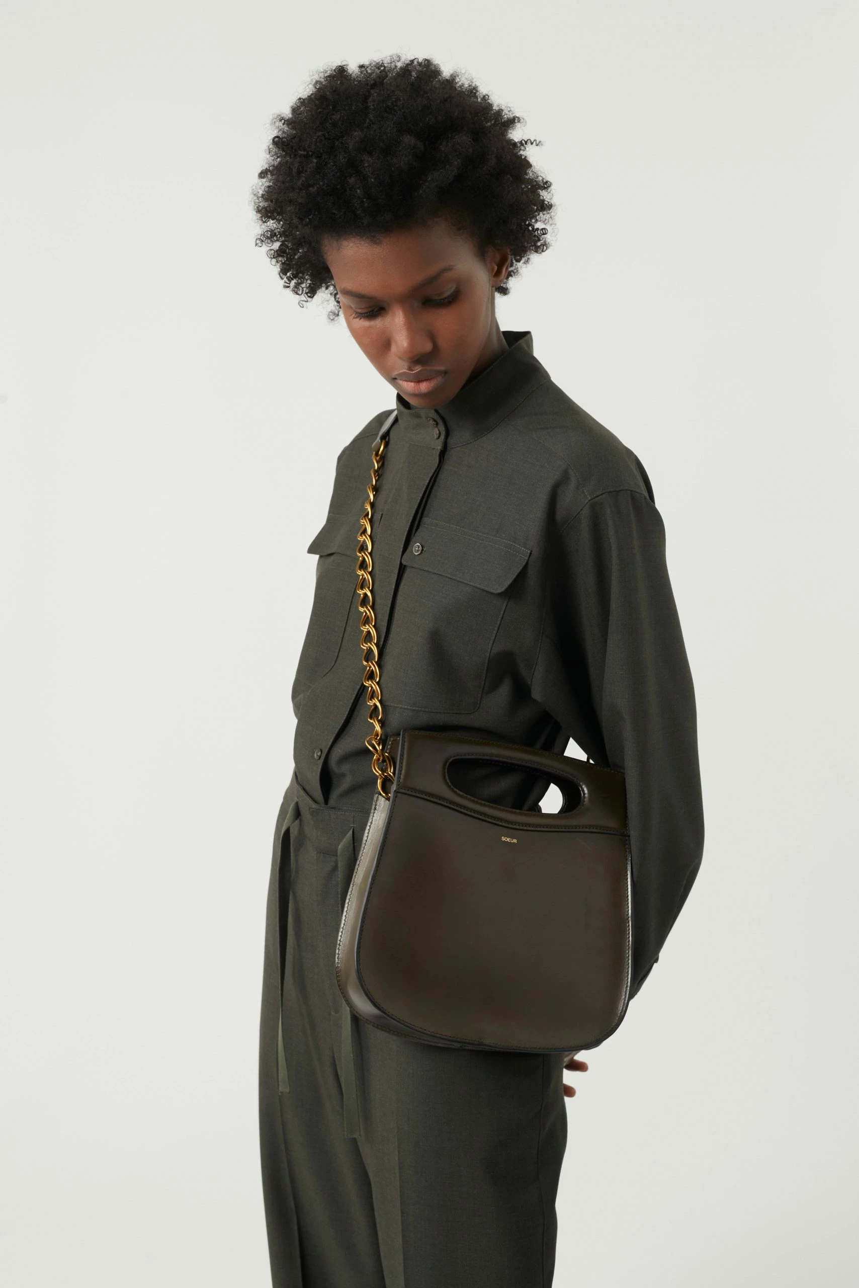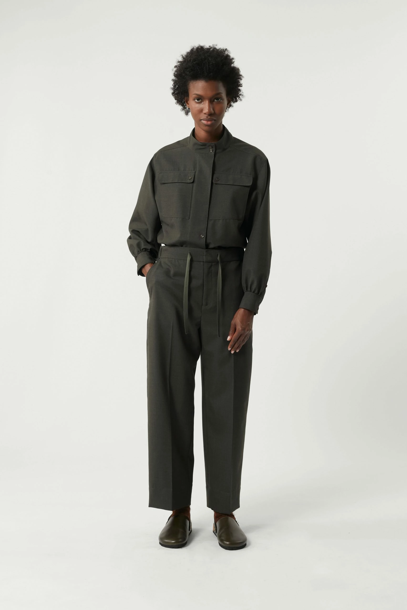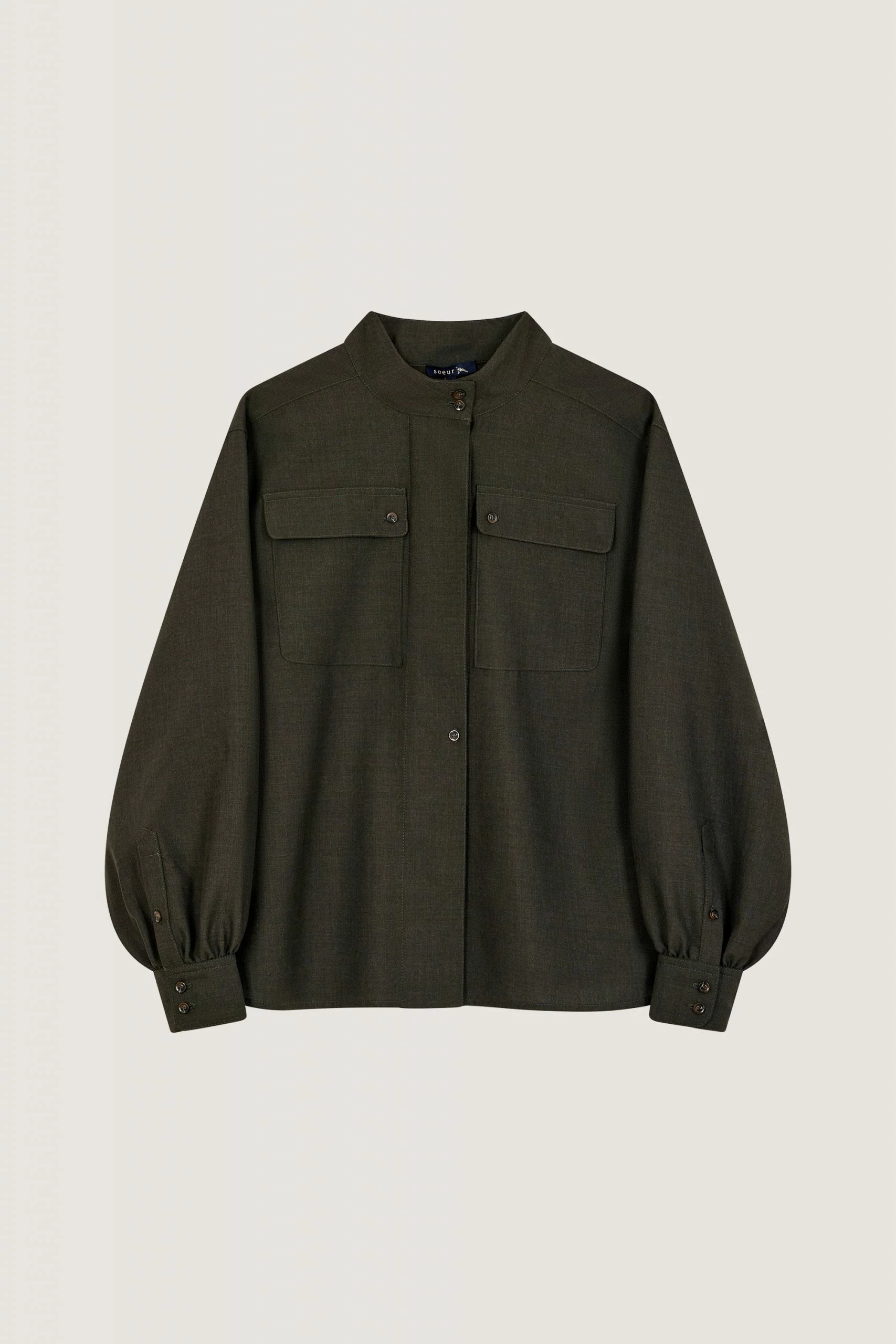Rita est une chemise classique aux détails empruntés au vestiaire militaire. Elle est féminisée par sa matière en soie et laine qui est souple lui donnant un joli tombé. Elle arbore le col montant emblématique des collections Sœur et se ferme par une patte de boutonnage.