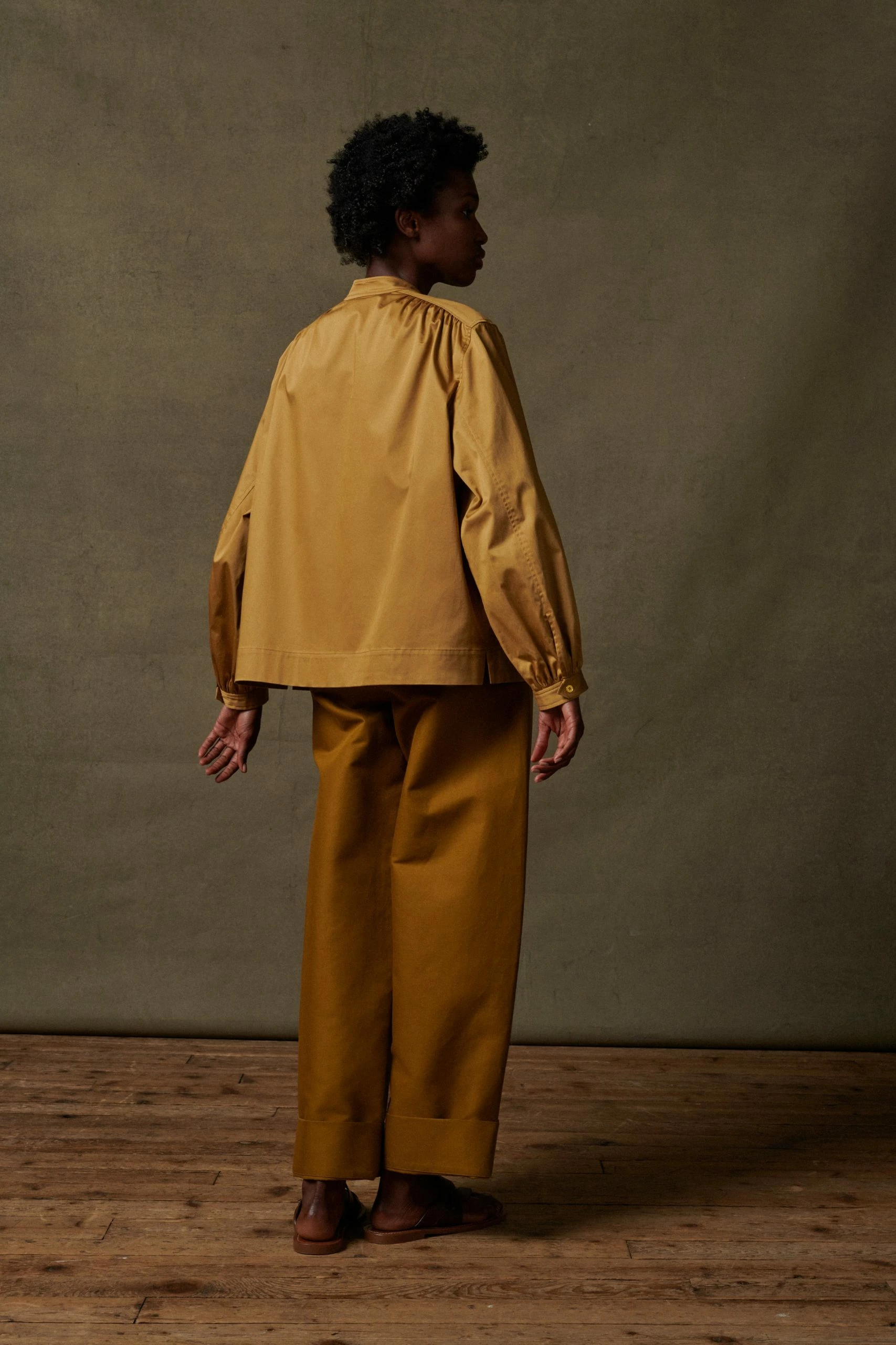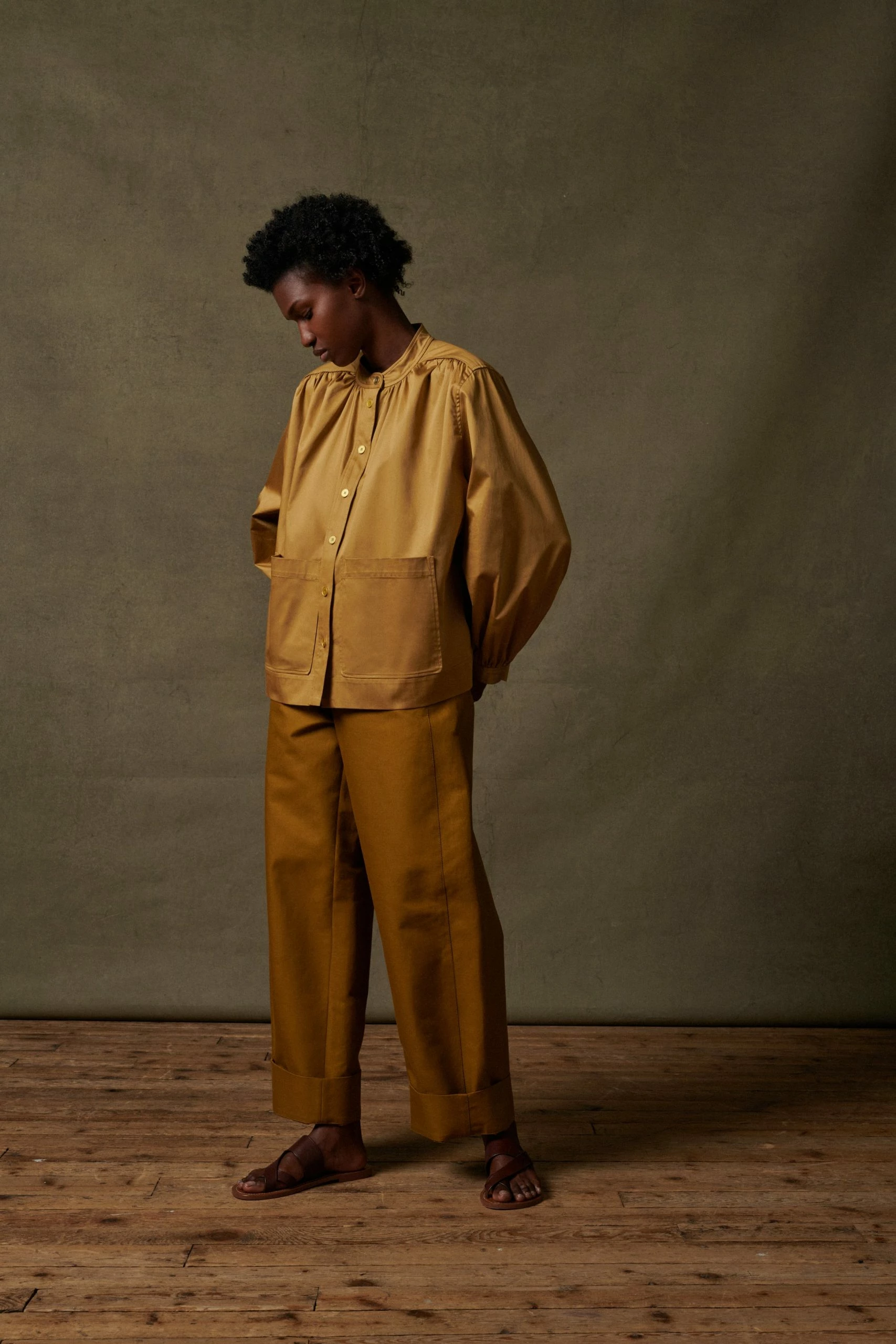Séraphine est une chemise créée pour les occasions de l’été. Elle est coupée dans un satin de coton de poids moyen, idéal pour maintenir son volume ample au porté.