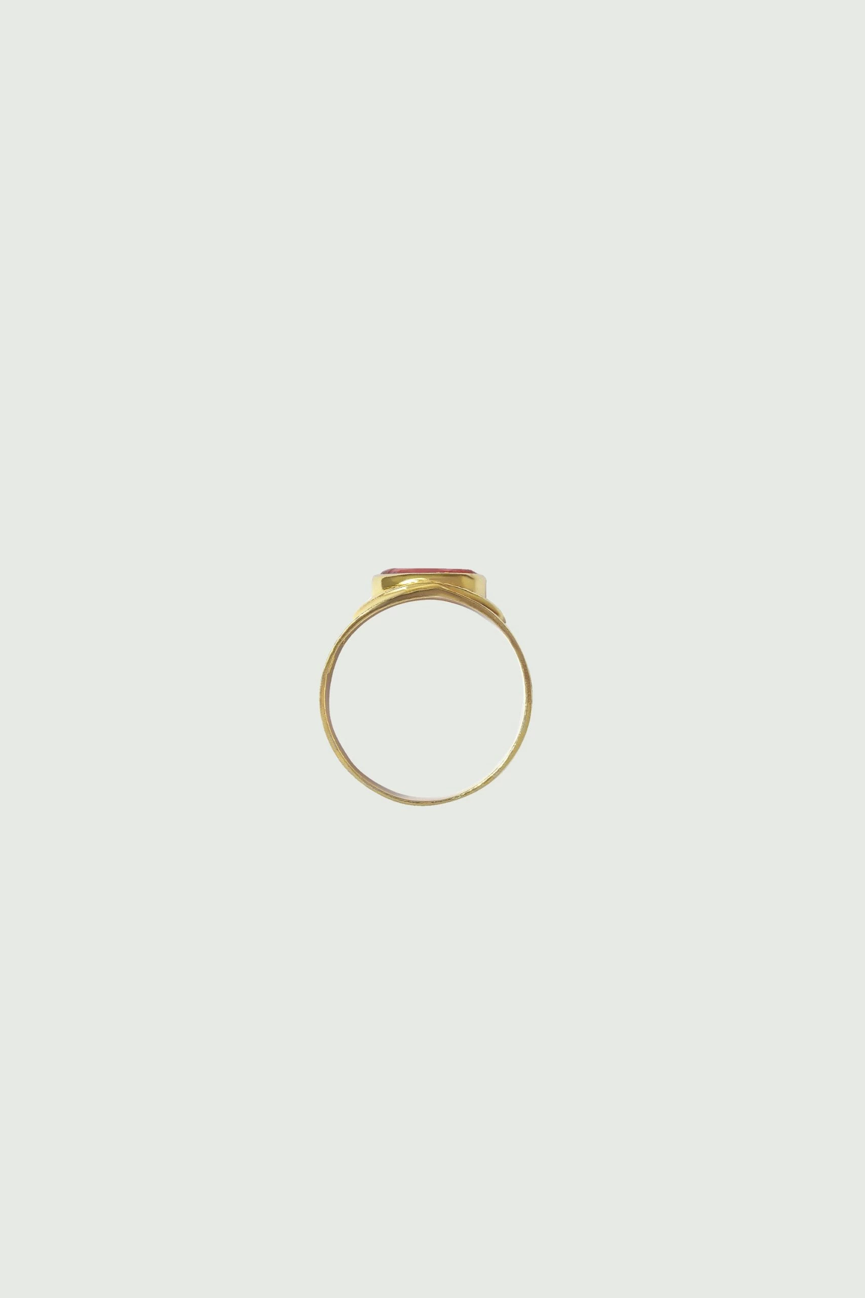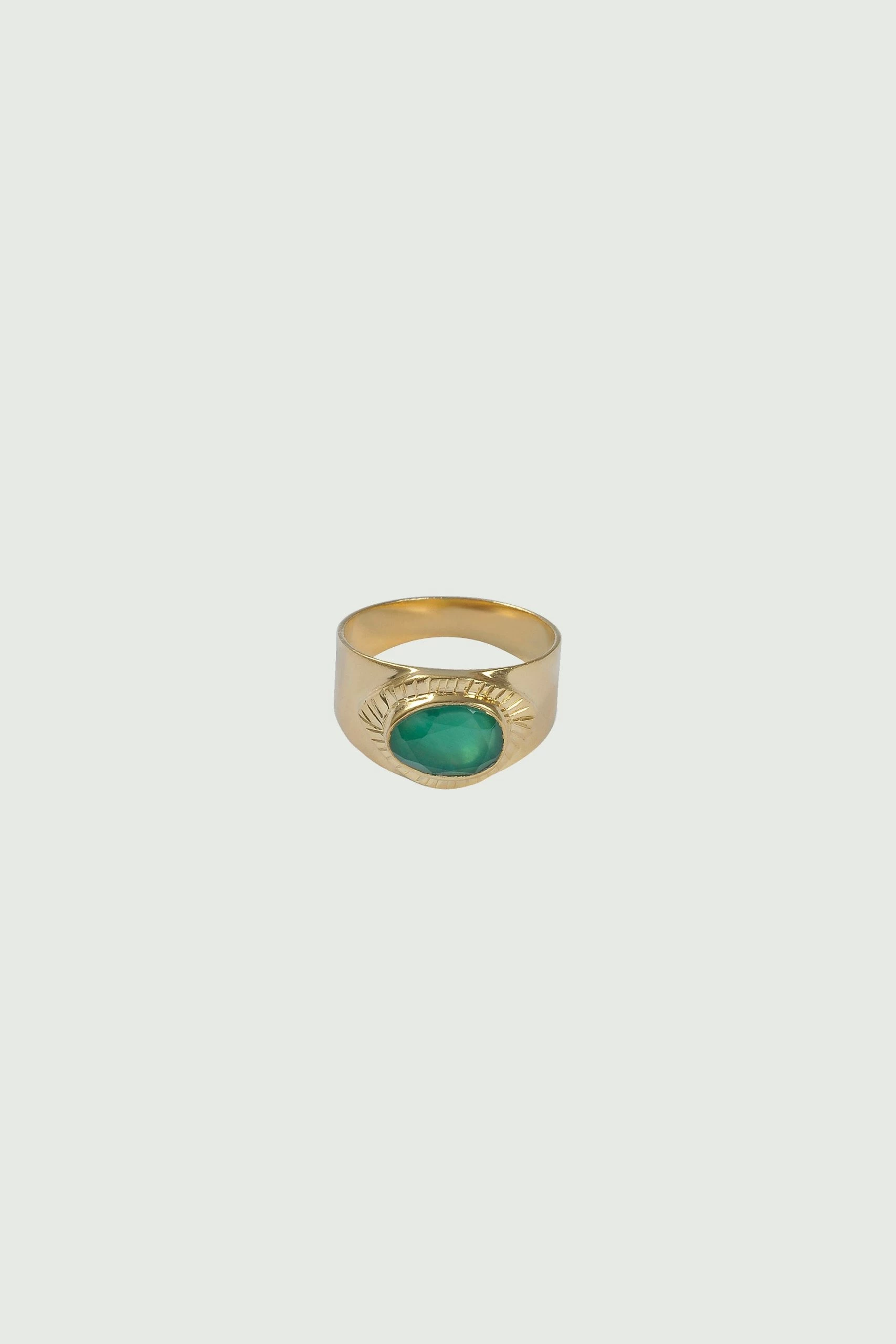 Chevalière ornée d’une pierre verte. Poids 3,45g.