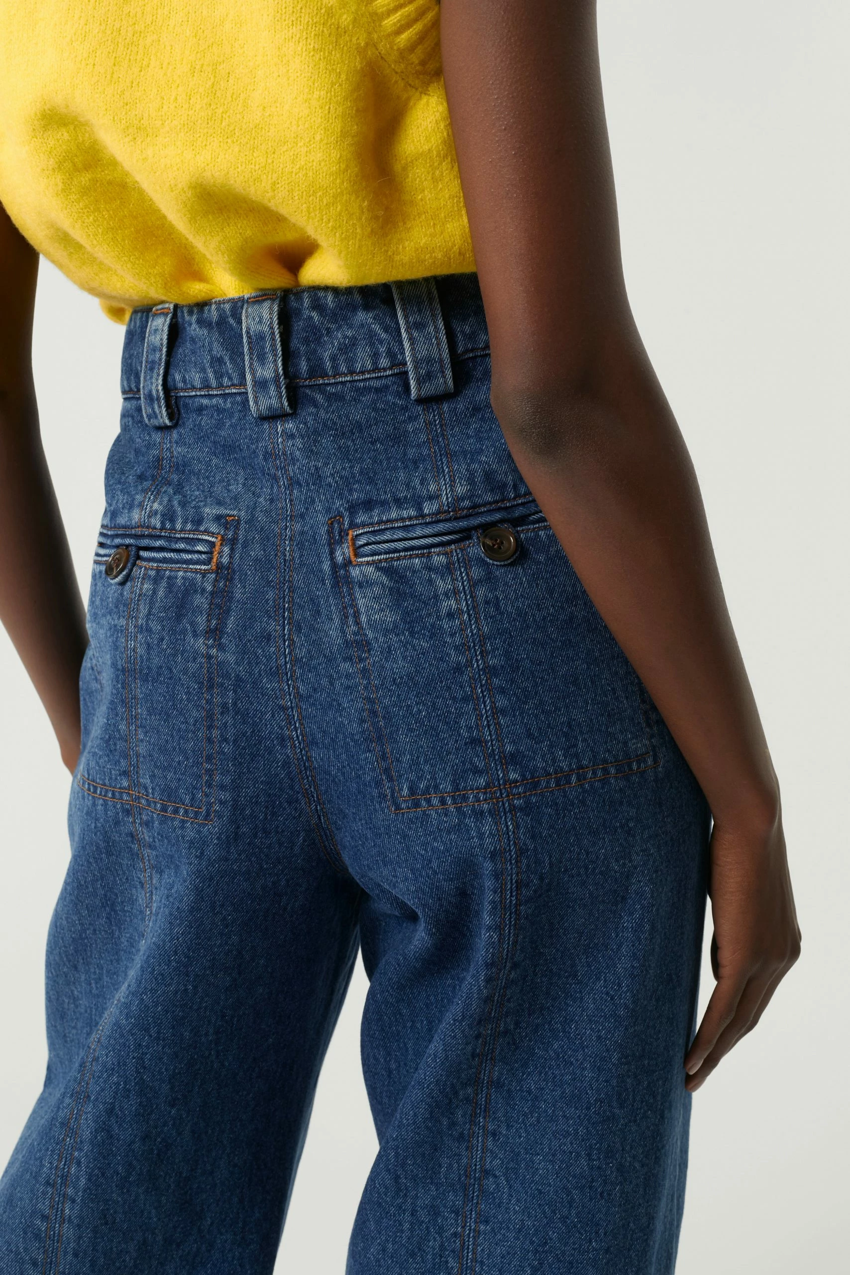 Salvador est un nouveau pantalon large et masculin. Il reprend son style workwear, retravaillé avec des découpes marquées et un bas de jambe à resserrer pour modifier le volume.