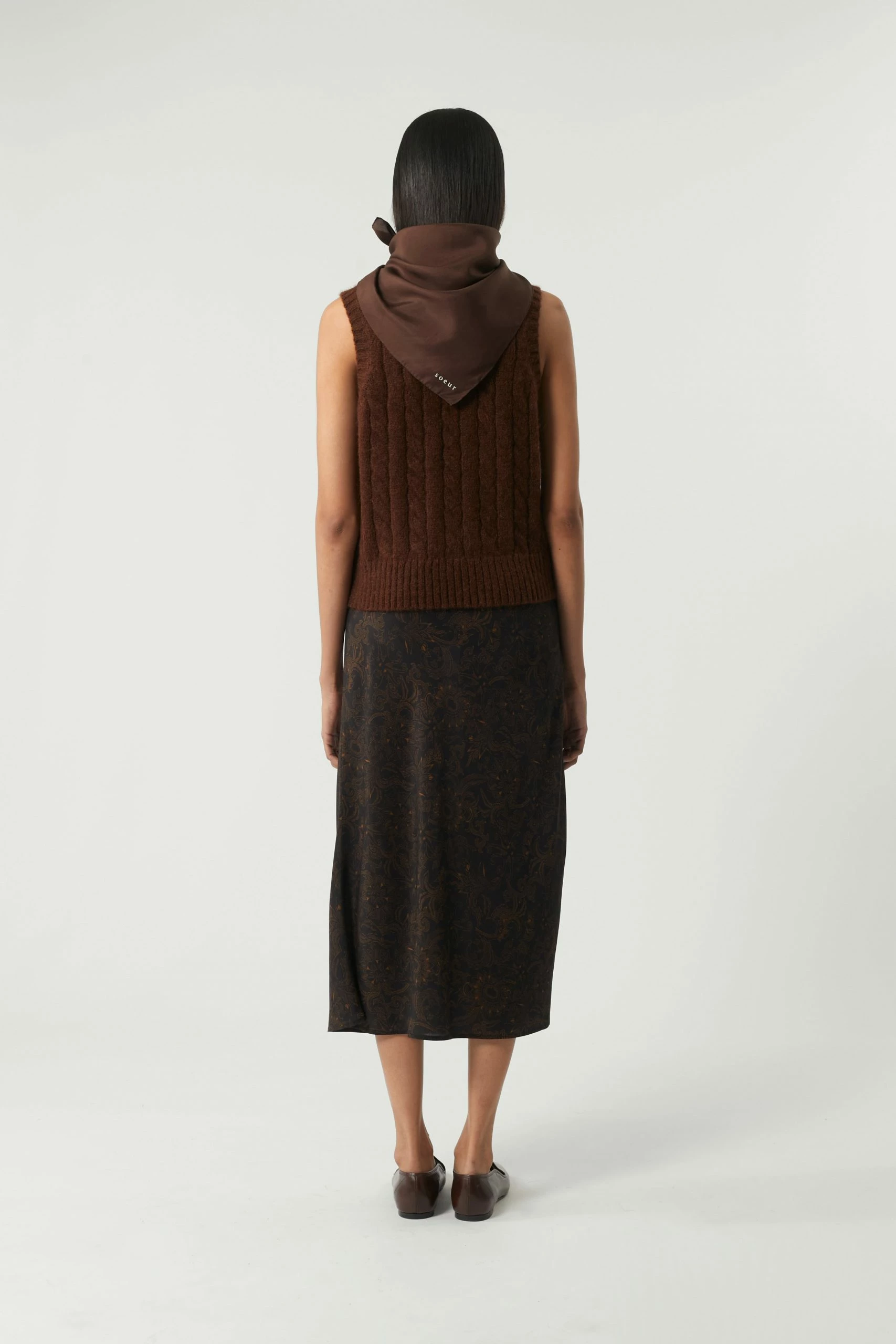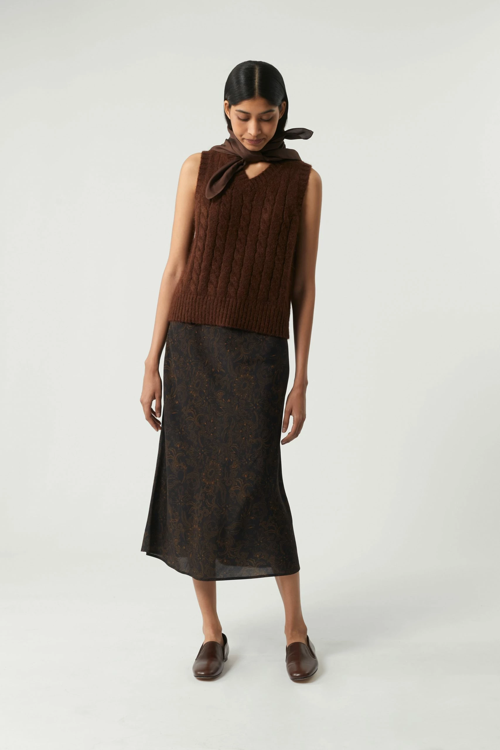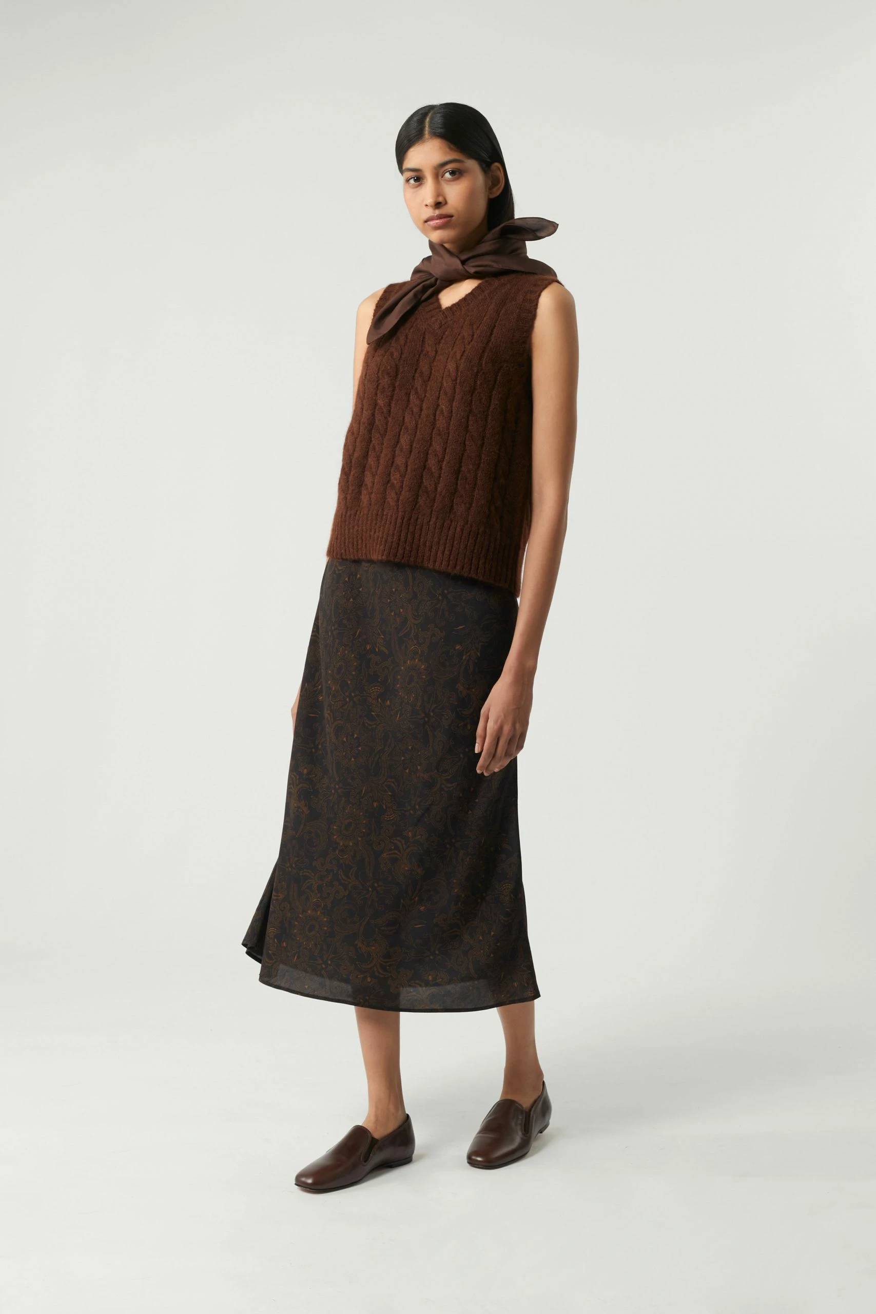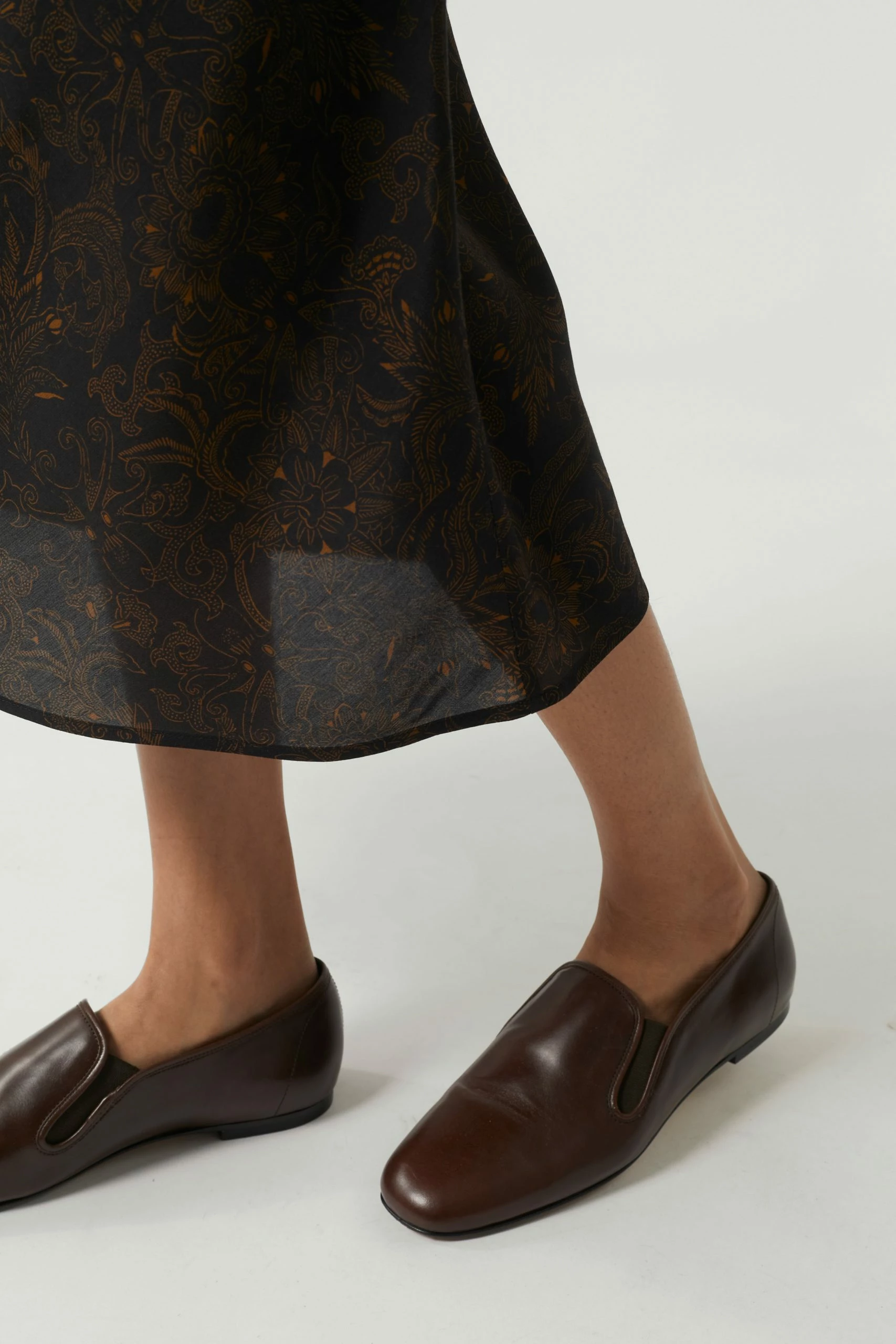 Jupe longue en sergé fluide imprimé noir et noisette