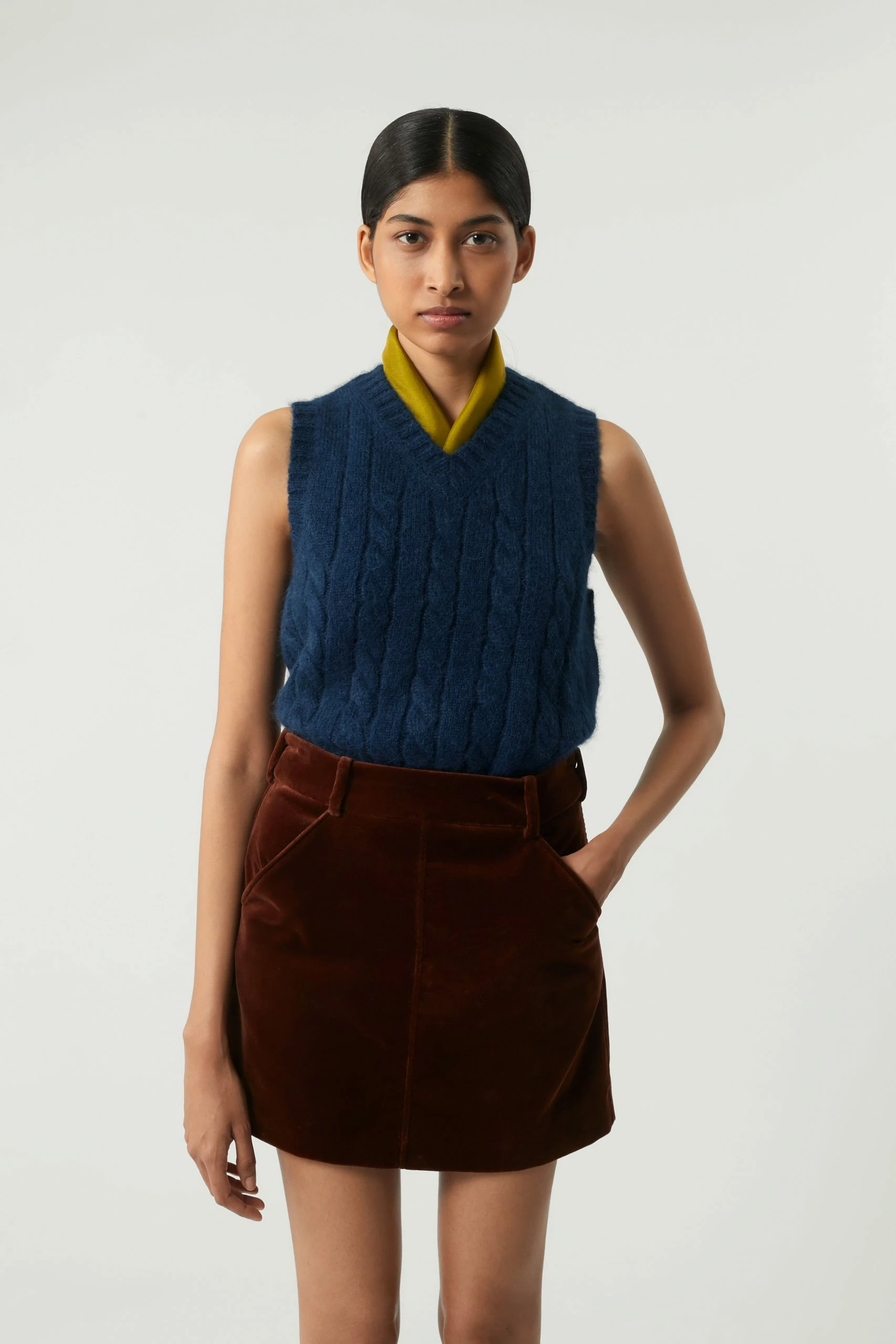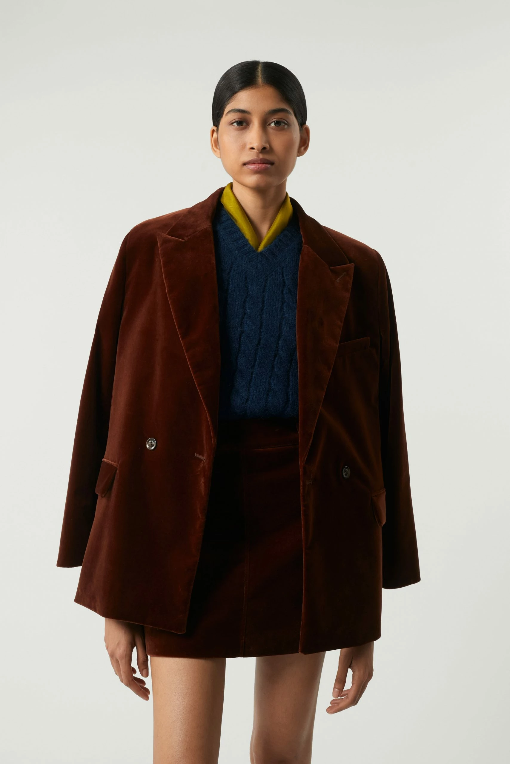 Mini-jupe en velours lisse noisette