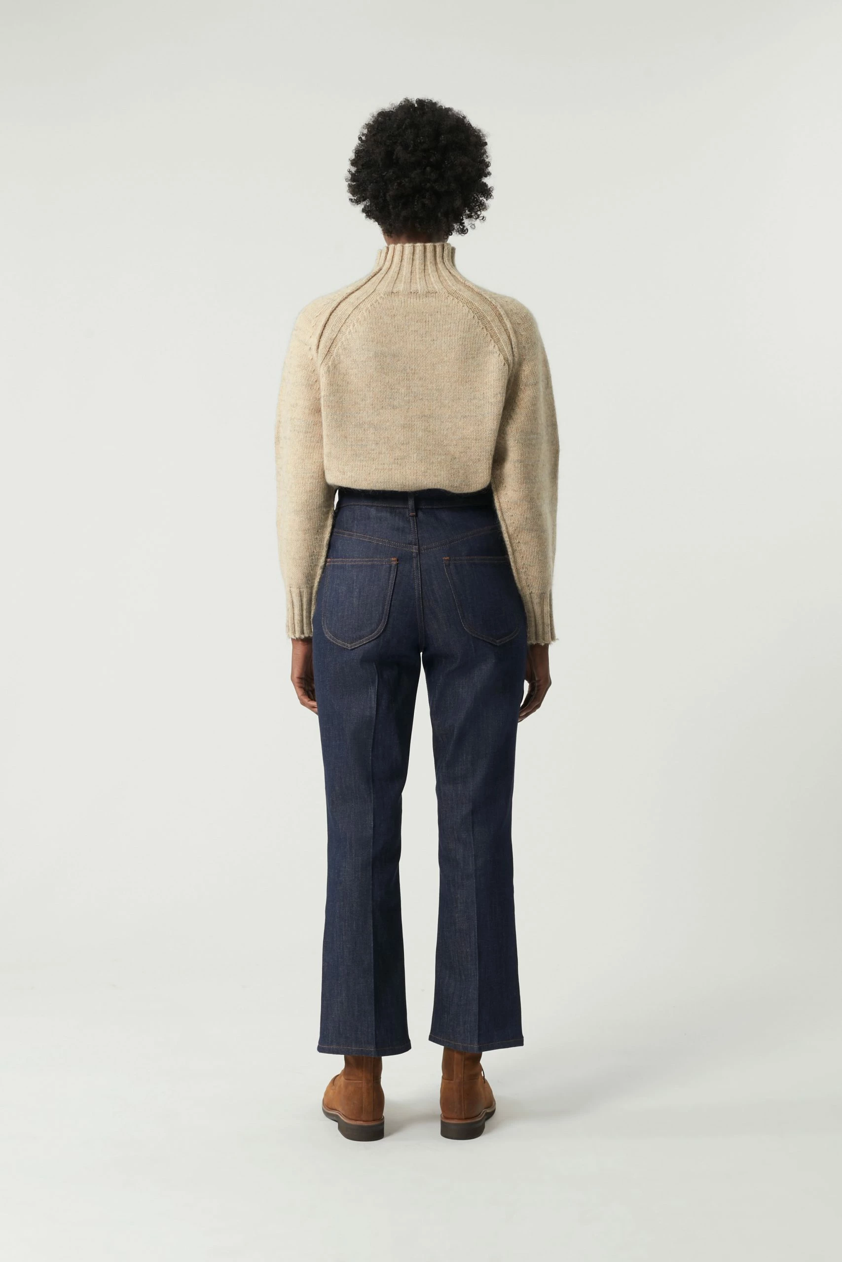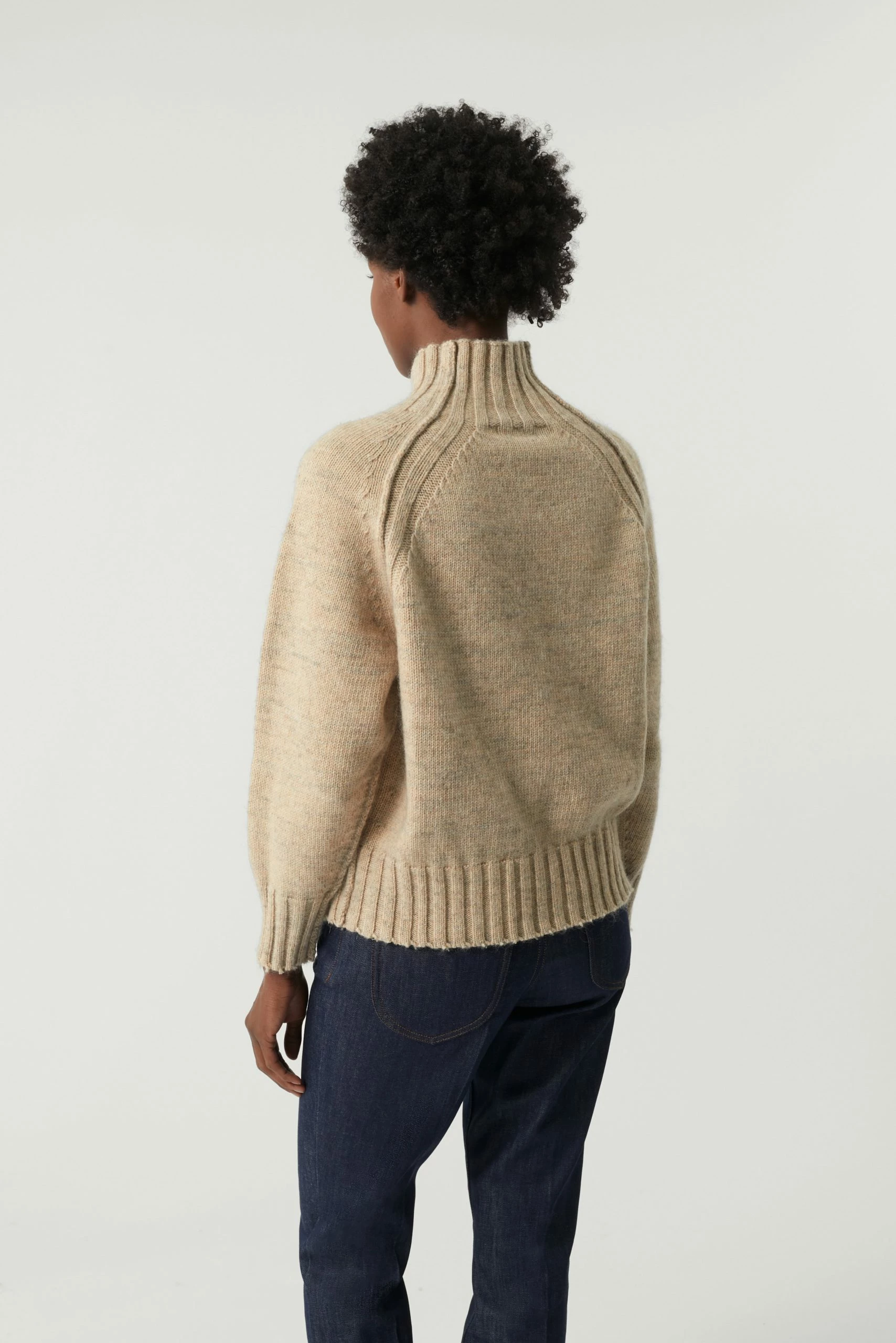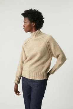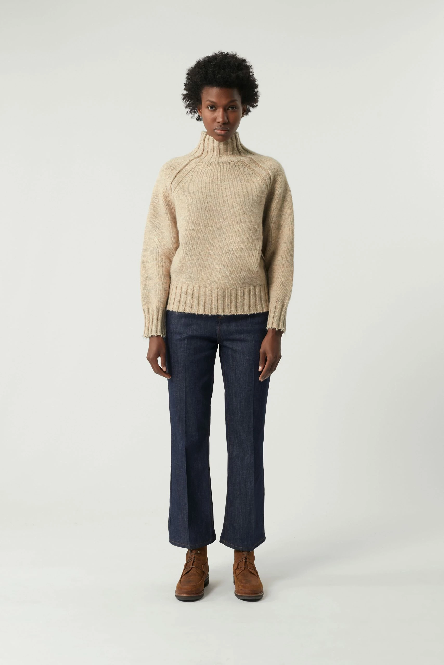 Slowly est le pull d’hiver par excellence. Il est réalisé dans un tricot de laine chaud et épais et possède un col montant. C’est un classique revisité par un jeu d’effilochage. Les fils tirés en bas de manche et bas du pull donnent un effet « décousu ».