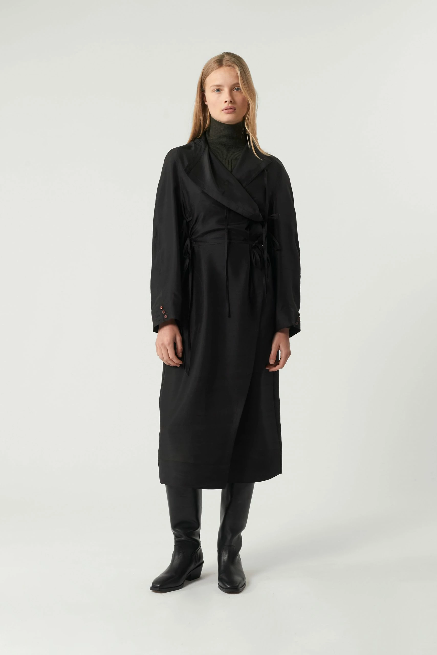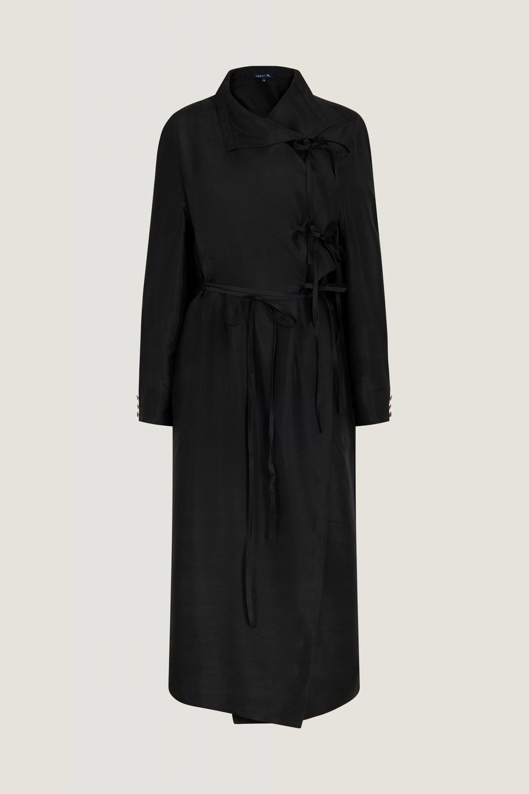 Susie une robe est une robe à l’allure « couture » et à la construction raffinée. C’est une modèle cache cœur qui se referme jusqu’au col par un jeu de liens à la taille et à la poitrine. Le volume droit est modulable, se nouant et s’adaptant au corps selon les envies.