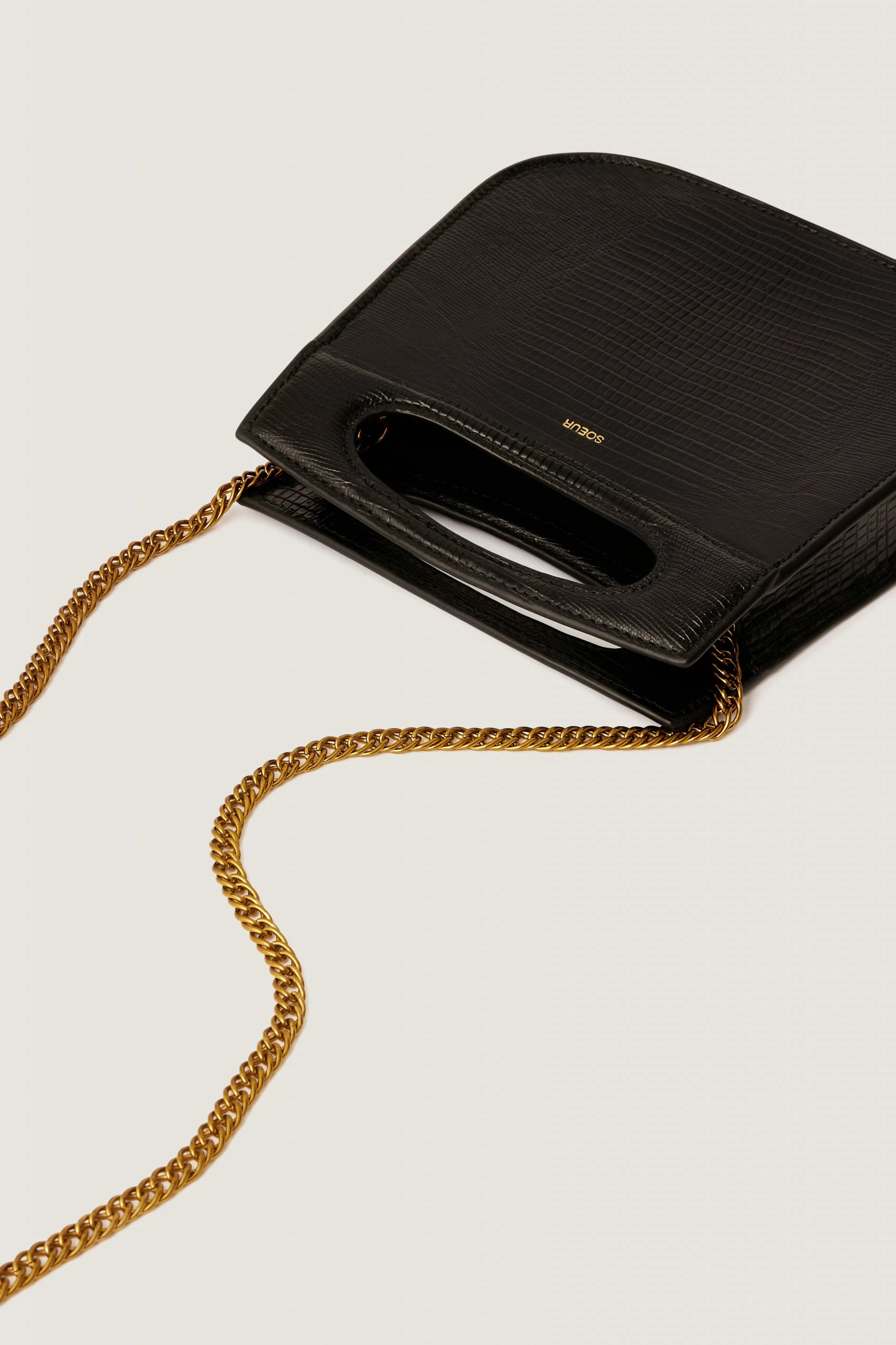 Le Chéri Mini est un sac iconique de nos collections. En plus de son impact visuel, il est pratique avec de multiples portés. Il revient cette saison dans différentes finitions de cuir (lisse ou embossé) pour varier les looks.