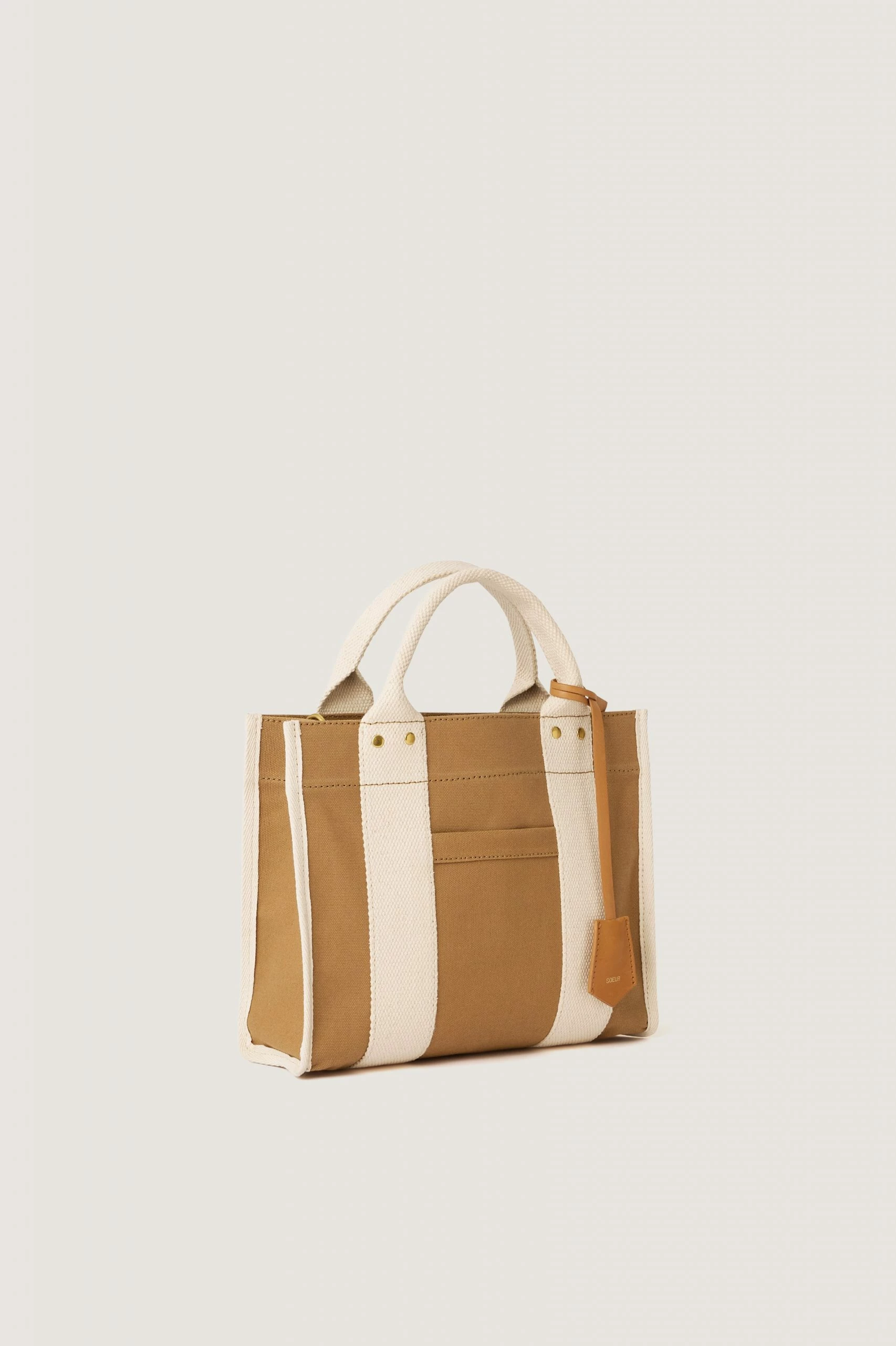 Safari mini est un sac cabas multipoches en toile pratique et élégant. Sa forme horizontale permet de faciliter l’organisation du sac. Il se porte à la main avec les anses en coton ou en bandoulière grâce à la sangle.